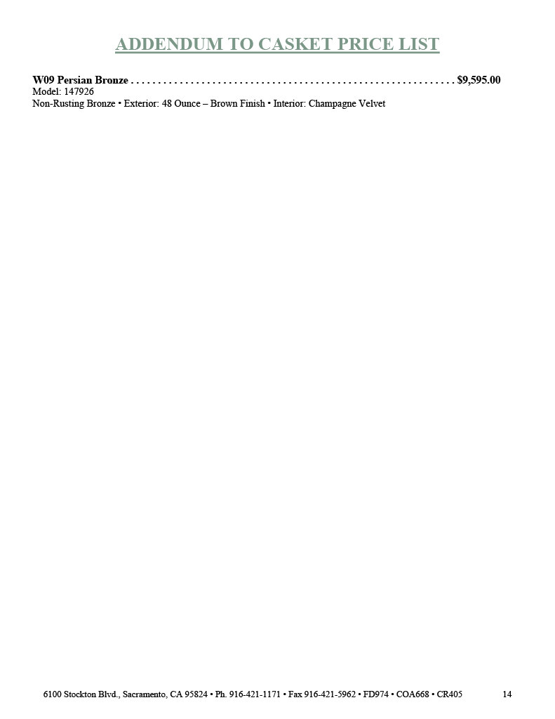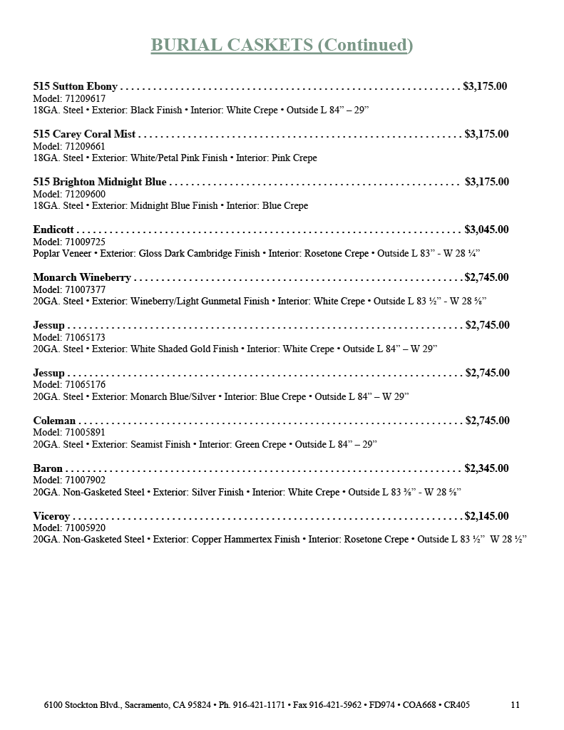 To Download a copy of our General Price List, please click HERE